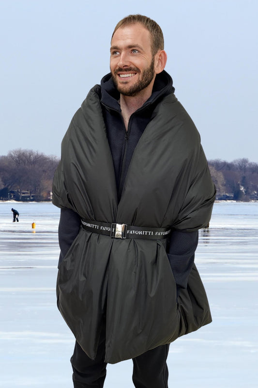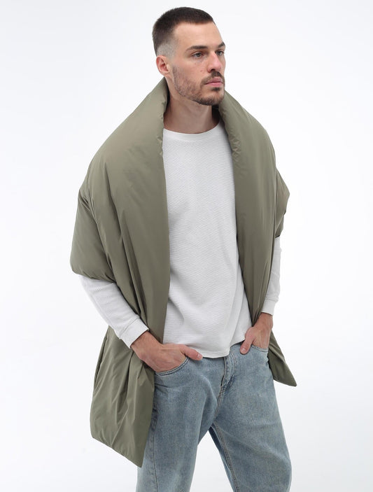 Mens Puffer Blanket Shawl Cape with Removable Belt