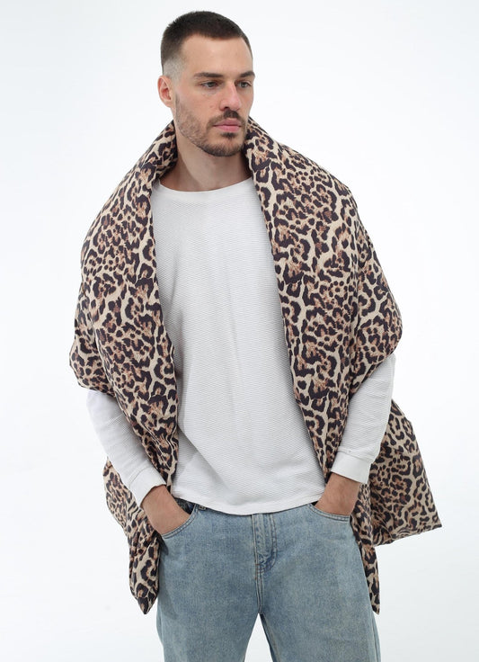 Men's Puffer Large Scarf 20x85in with 2 pockets Leopard Blanket Shawl Cape Around Shoulders Wrap Warm Winter Gift