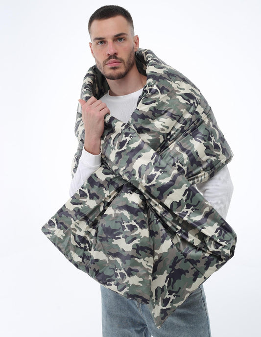 Military Green Camouflage Blanket Shawl Cape Around Shoulders Wrap Men's Puffer Large Scarf 20x85in with 2 pockets Warm Winter Gift