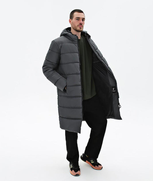 Puffer Mens Coat Hooded Long Jacket Winter Male Outerwear Пуховик ПМ-1310 Лаке Тон 18 + Тон 11