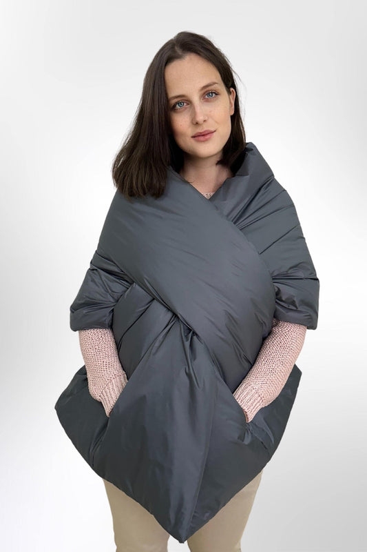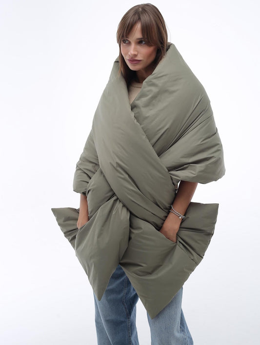 Shop our collection of Puffer Cape Stoles, perfect for both men and women. These versatile large puffer scarves feature two convenient pockets and can be worn as a cozy blanket shawl cape around the shoulders. Offering warmth and comfort, this winter wrap is ideal for chilly days, making it a thoughtful winter gift. Available in a variety of colors, our puffer cape stole is the perfect blend of style and functionality, providing extra warmth without compromising on fashion. Stay cozy and stylish all season long with this must-have winter accessory.