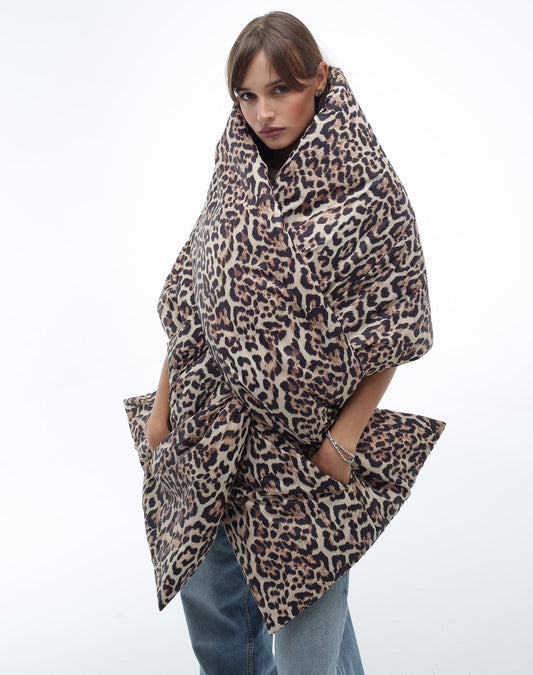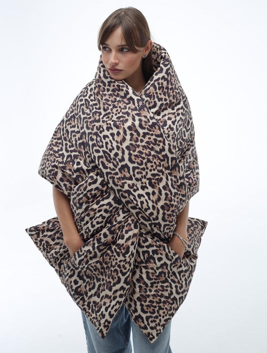 Unisex Leo Cape Puffer Blanket Shawl Large Scarf 20x85in with 2 pockets Leopard Around Shoulders Wrap Warm Winter Gift