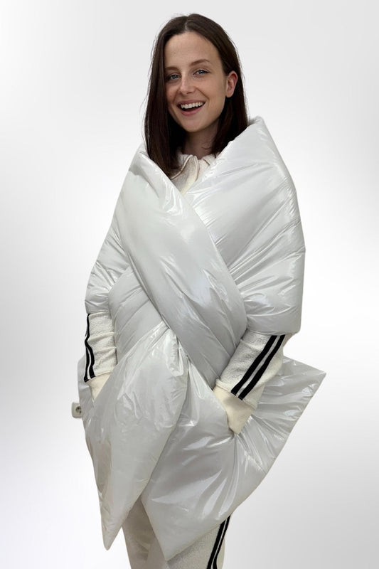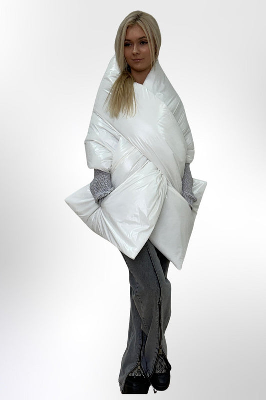 White Puffer Large Scarf 20x85in with 2 pockets Blanket Shawl Cape Around Shoulders Wrap Warm Winter Gift