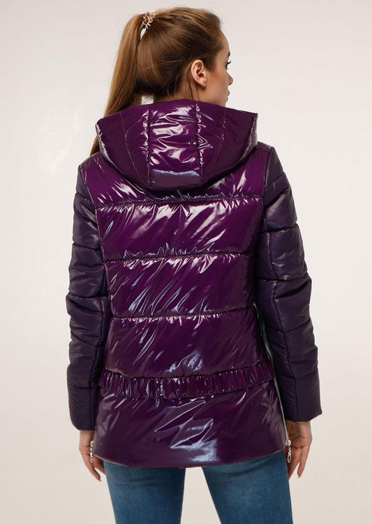 Purple Puffer Padded Hoodie Coat Womens Down Jacket Пуховик ПВ-1255 Лак Тон 93