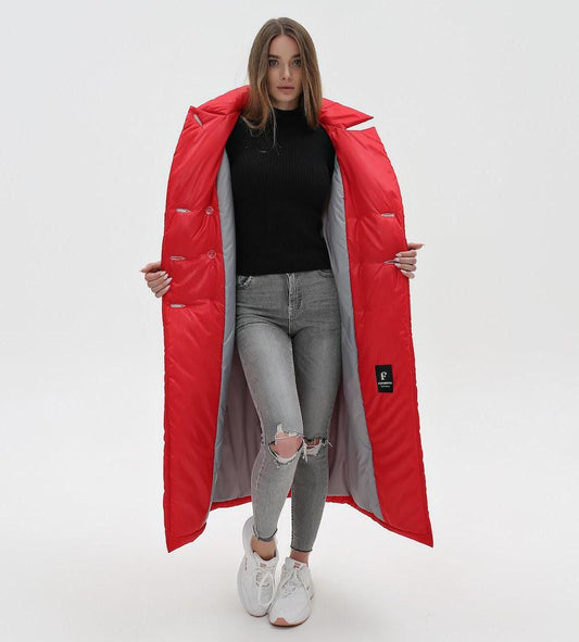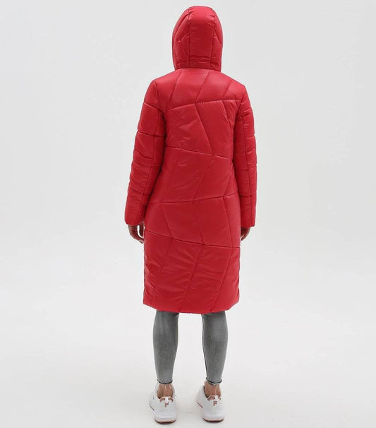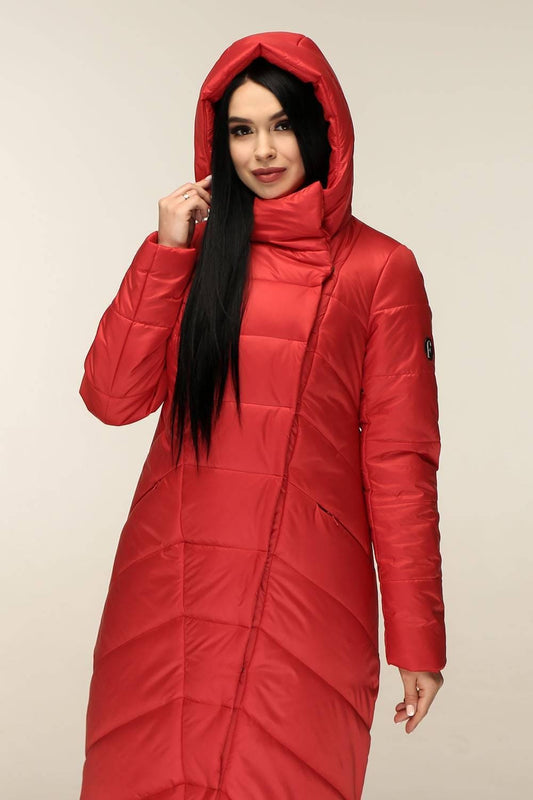Red Long Puffer Coat Winter Warm Women's Clothing Пуховик ПВ-1133 Лаке Тон 76