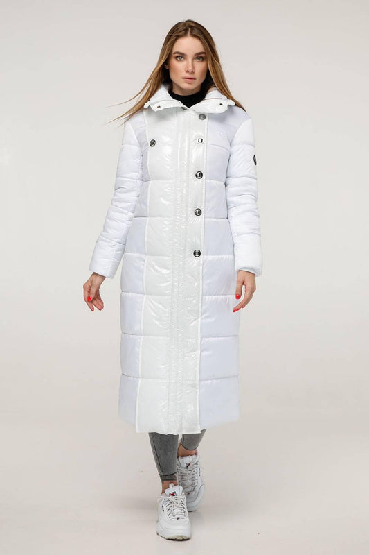 White Long Puffer Coat Warm Winter Clothing Пуховик ПВ-1279 Лаке Тон 1