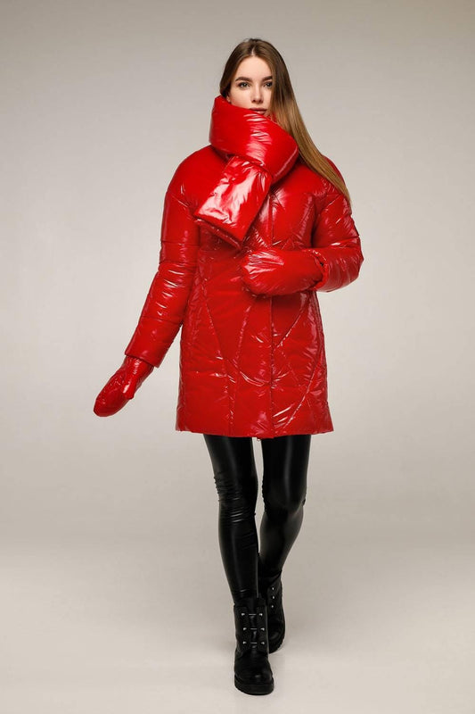 Women's Red Puffer Jacket with Scarf and Mittens - Winter 3-Piece Set Пуховик ПВ-1291 Лак Тон 7
