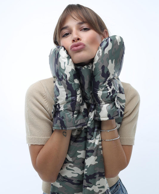 Camo Green Women's Set Puffer Scarf 6x90in and Puffer Mittens