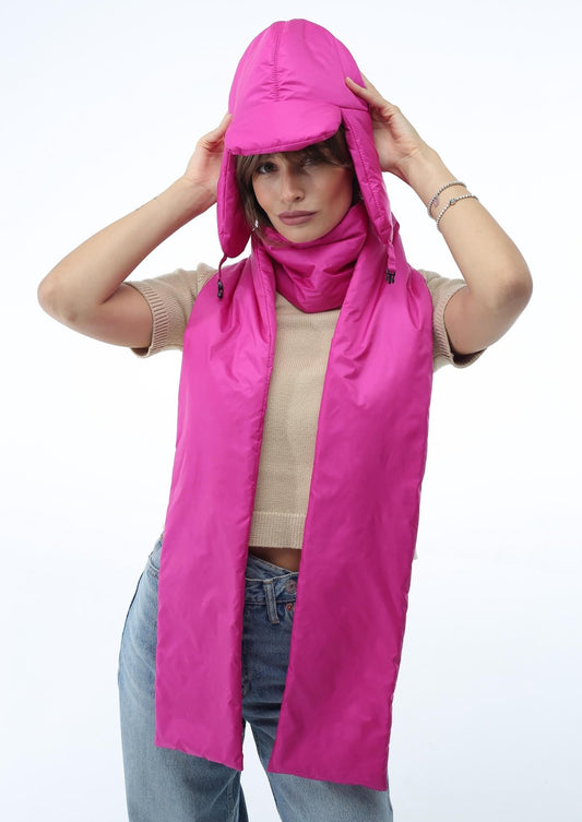 Hot Pink Women's 2-Piece Puffer Set Scarf 6x90in and Hat