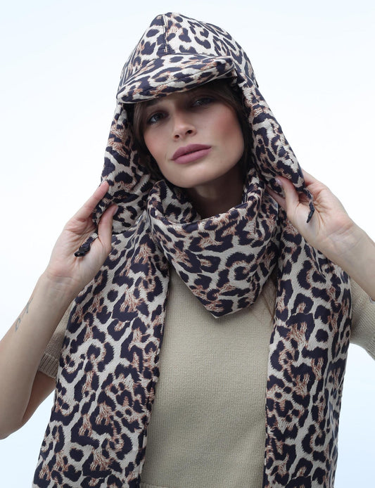 Leopard Women's 2-Piece Puffer Set Scarf 6x90in and Hat
