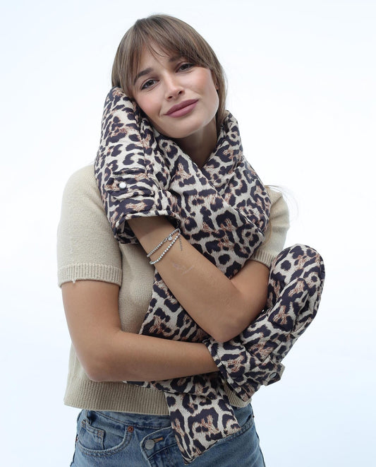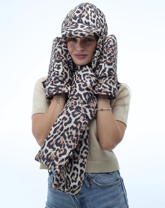 Leopard Women's Set Puffer Scarf 6x90in and Puffer Mittens