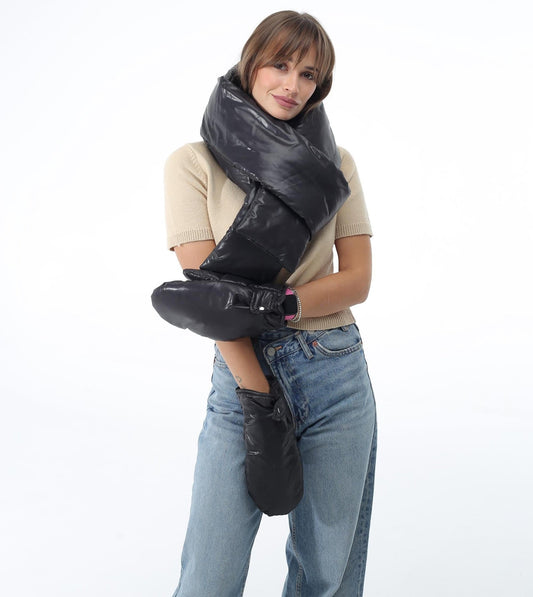 Women's Set Puffer Scarf 6x90in and Puffer Mittens