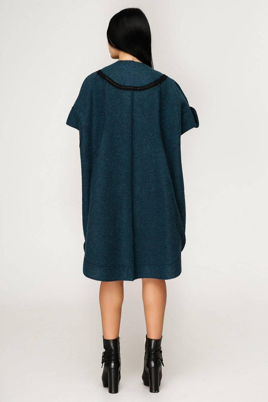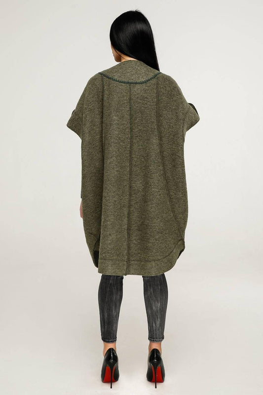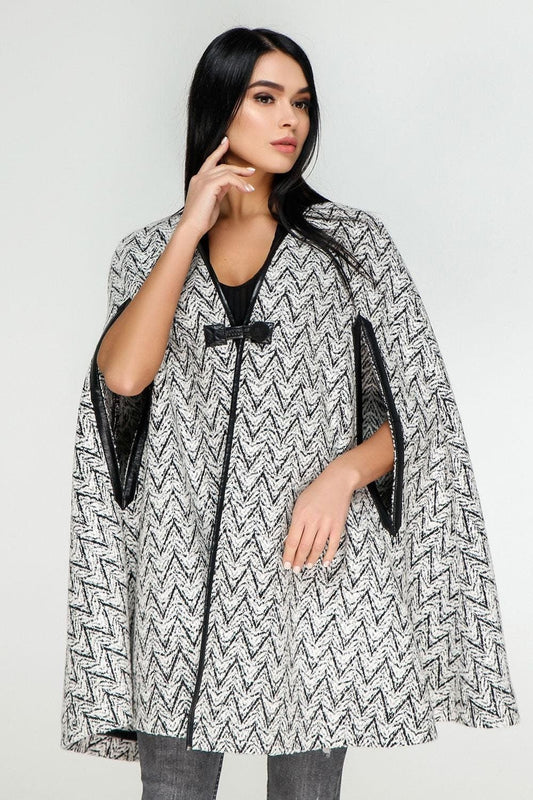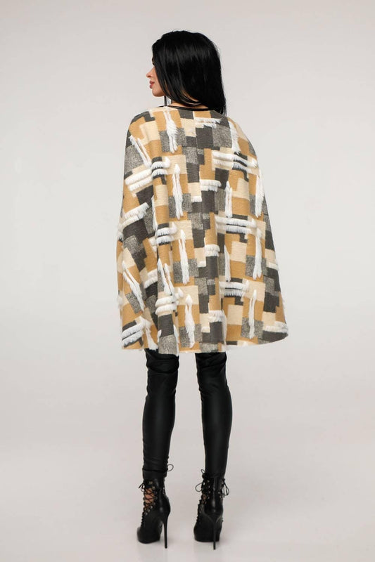 Wool Cape Women Loose Fit Cozy Stylish Oversized Coat Пончо В-1176 AK 3074 B Тон 1
