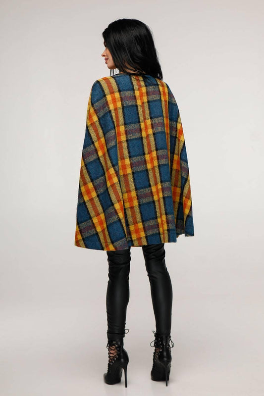 Plaid Wool Cape Women Loose Fit Cozy Stylish Oversized Coat Пончо В-1176 Rimini Тон 1