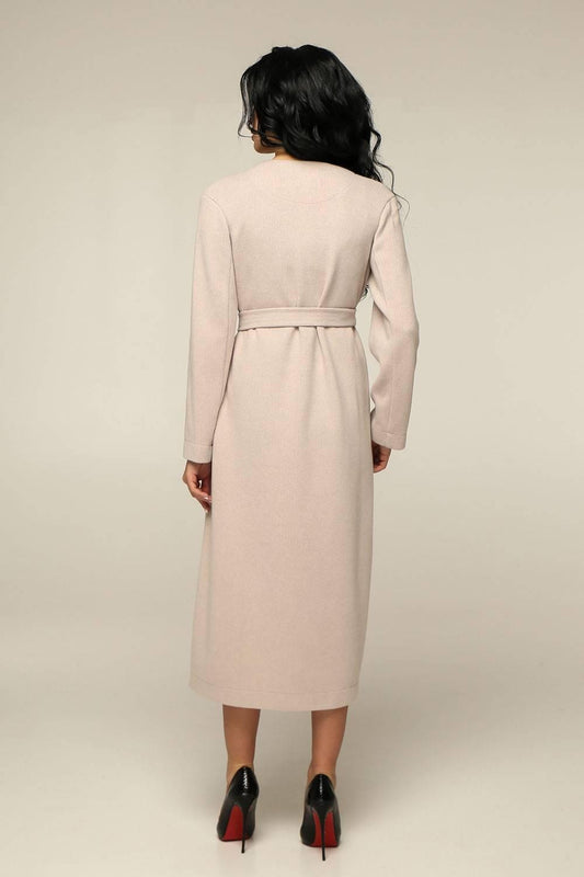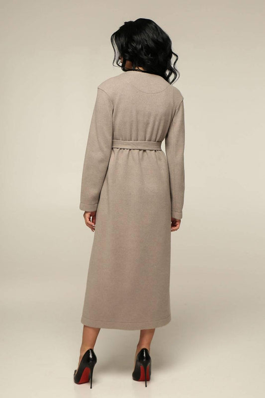 Brown Retro Cardigan Wool Coat Dress With Pockets Пальто В-1025 PE 14676 Тон 102