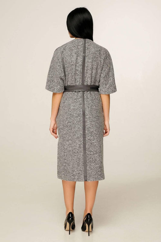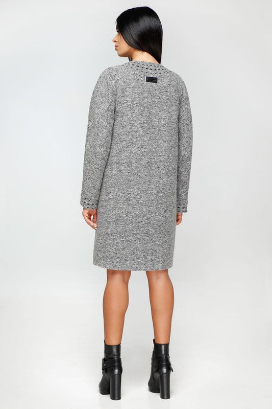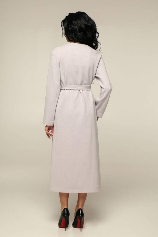 Gray Retro Cardigan Wool Coat Dress With Pockets Пальто В-1025 PE 14676 Тон 104