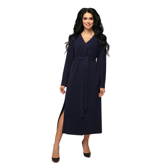 Blue Retro Cardigan Wool Coat Dress With Pockets Пальто В-1025 PE 14676 Тон 106