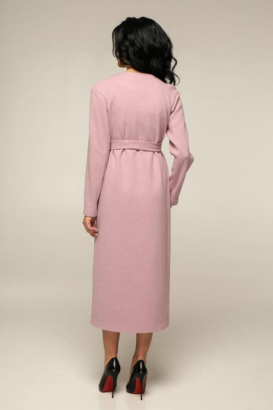 Blush Pink Belted Wrap Cardigan Long Woolen Knitwear Jacket Кардиган В-1195 Ангора D13 Тон 2