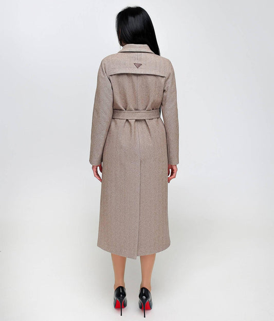 Wool Coat With Belt Wool Lined Patterned Textured Midi Outerwear Пальто В-1285 Сashimeco Тон 1