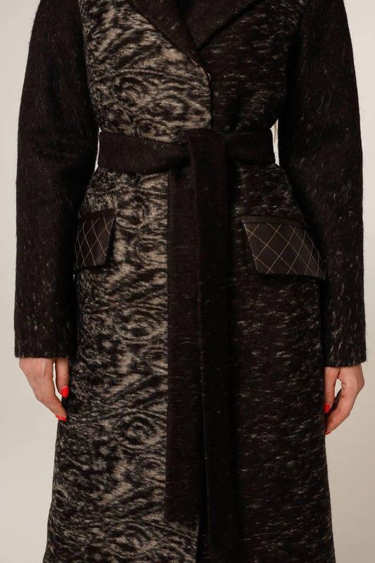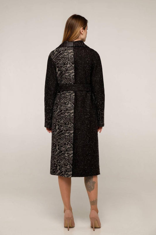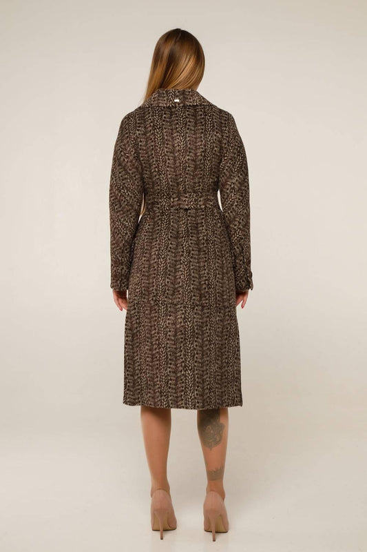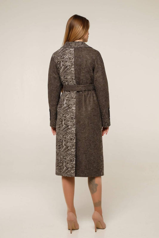 Wool Coat With Belt Lined Coat Patterned Textured Midi Outerwear Пальто В-1285 Nicodemo Тон 2