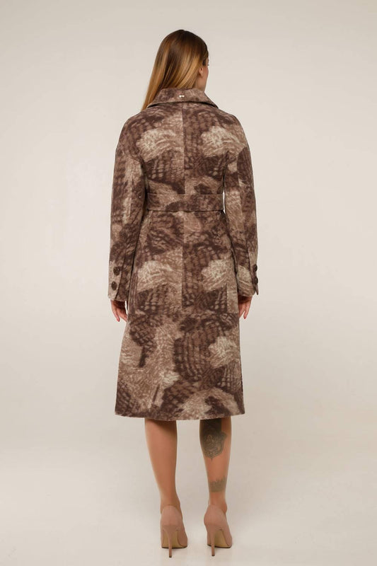 Wool Coat With Belt Patterned Textured Midi Lined Outerwear Пальто В-983 Dracena/50 Тон 10