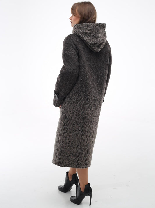 Wool Coat With Hood Patterned Textured Midi Outerwear Пальто П-1290 Сashimire Тон 4