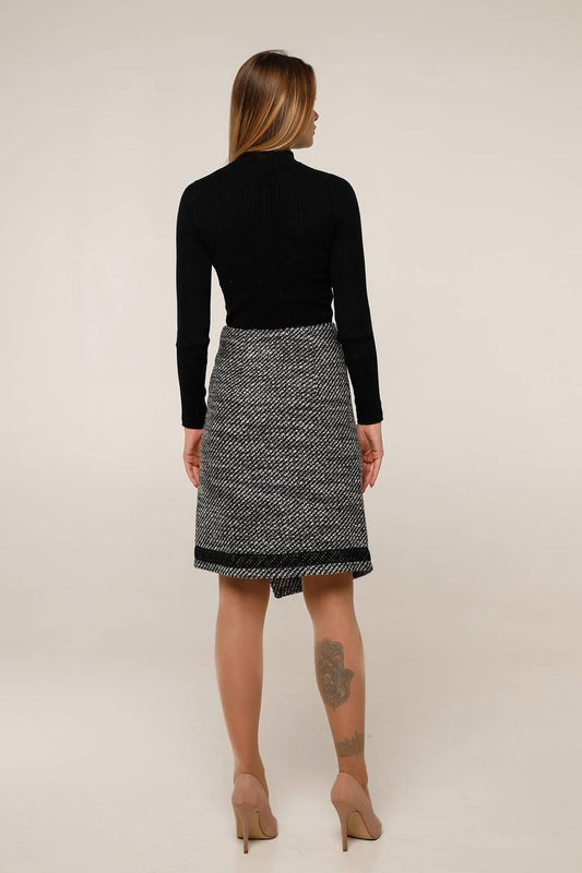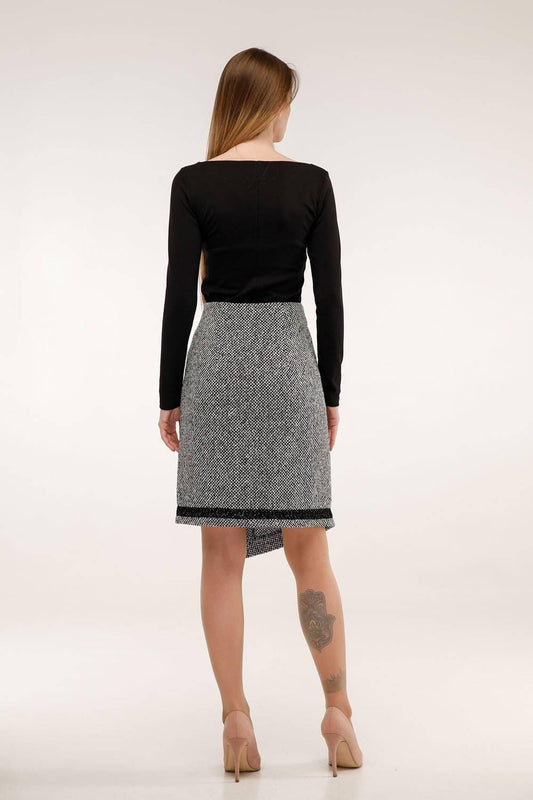 Discover our stylish Wool Skirt collection, featuring the elegant Asymmetric Wool Wrap Skirt in an A-line midi design. Perfect for both autumn and winter, this skirt offers a flattering fit with a warm, cozy feel. The asymmetric wrap design adds a modern touch, while the luxurious wool fabric ensures comfort and warmth. Ideal for layering with tights or pairing with sweaters, this versatile wool wrap skirt is perfect for creating chic, seasonal looks. Stay fashionable and warm with this essential piece in your wardrobe.